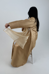 Je voulais une couleur qui change du classique tout en restant élégante. Ce bronze apporte une chaleur subtile et met en valeur la brillance naturelle du satin. Sa coupe bien équilibrée la rend facile à porter. Sheila assorti inclus.