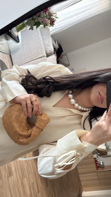 Compact mais pratique, il accueille l’essentiel : téléphone (format iPhone Pro uniquement, pas Pro Max), clés, carte et gloss.